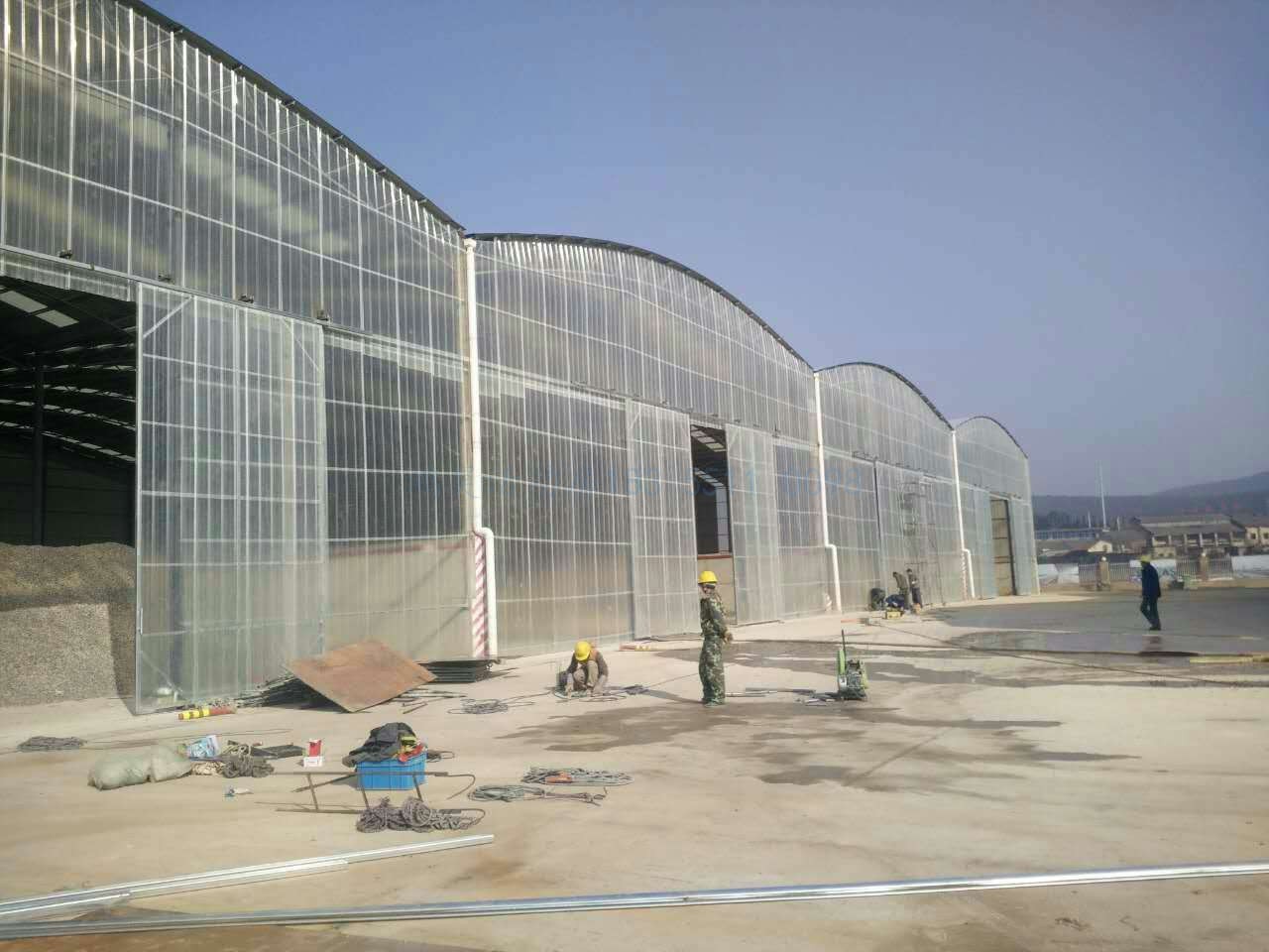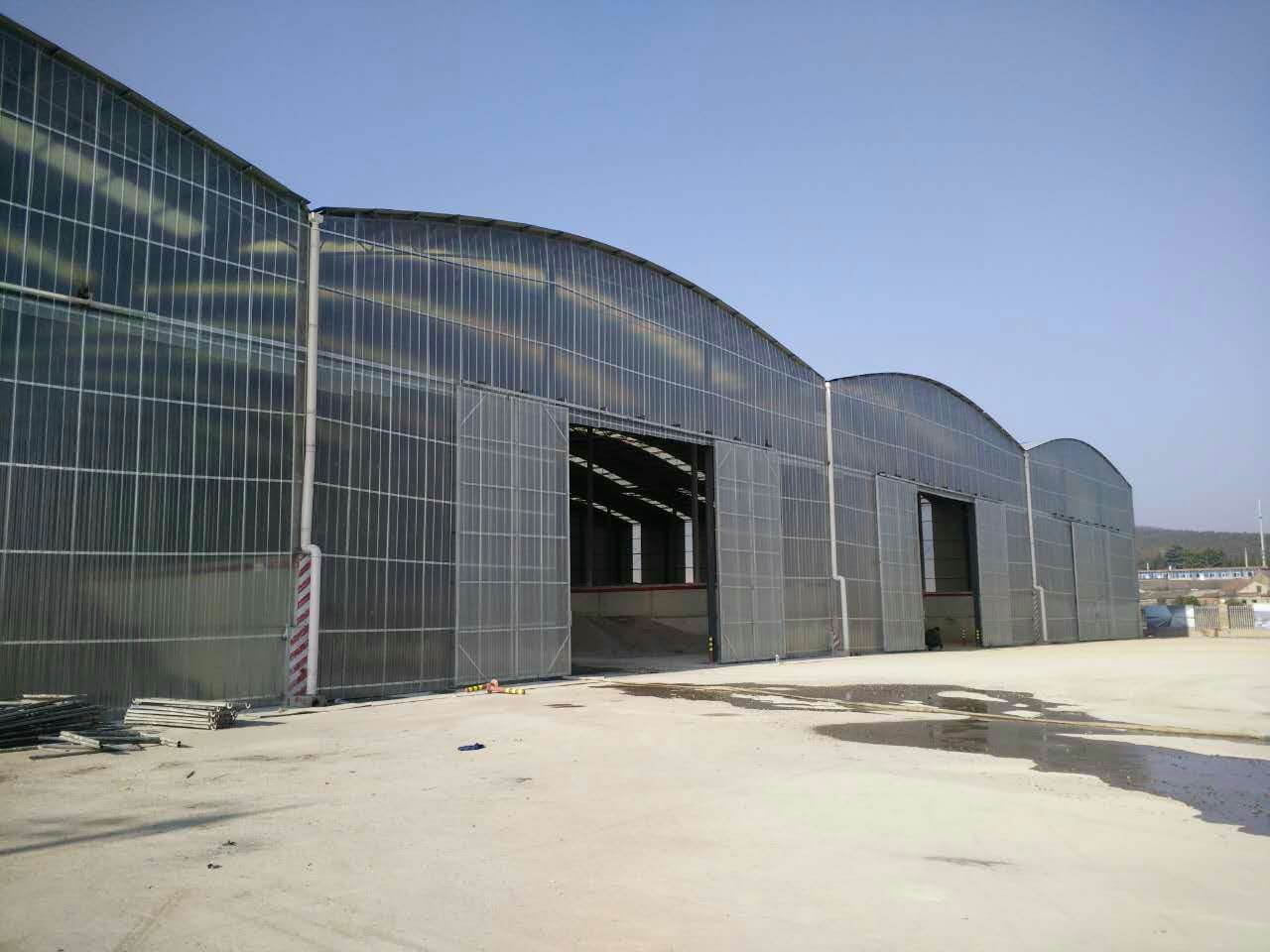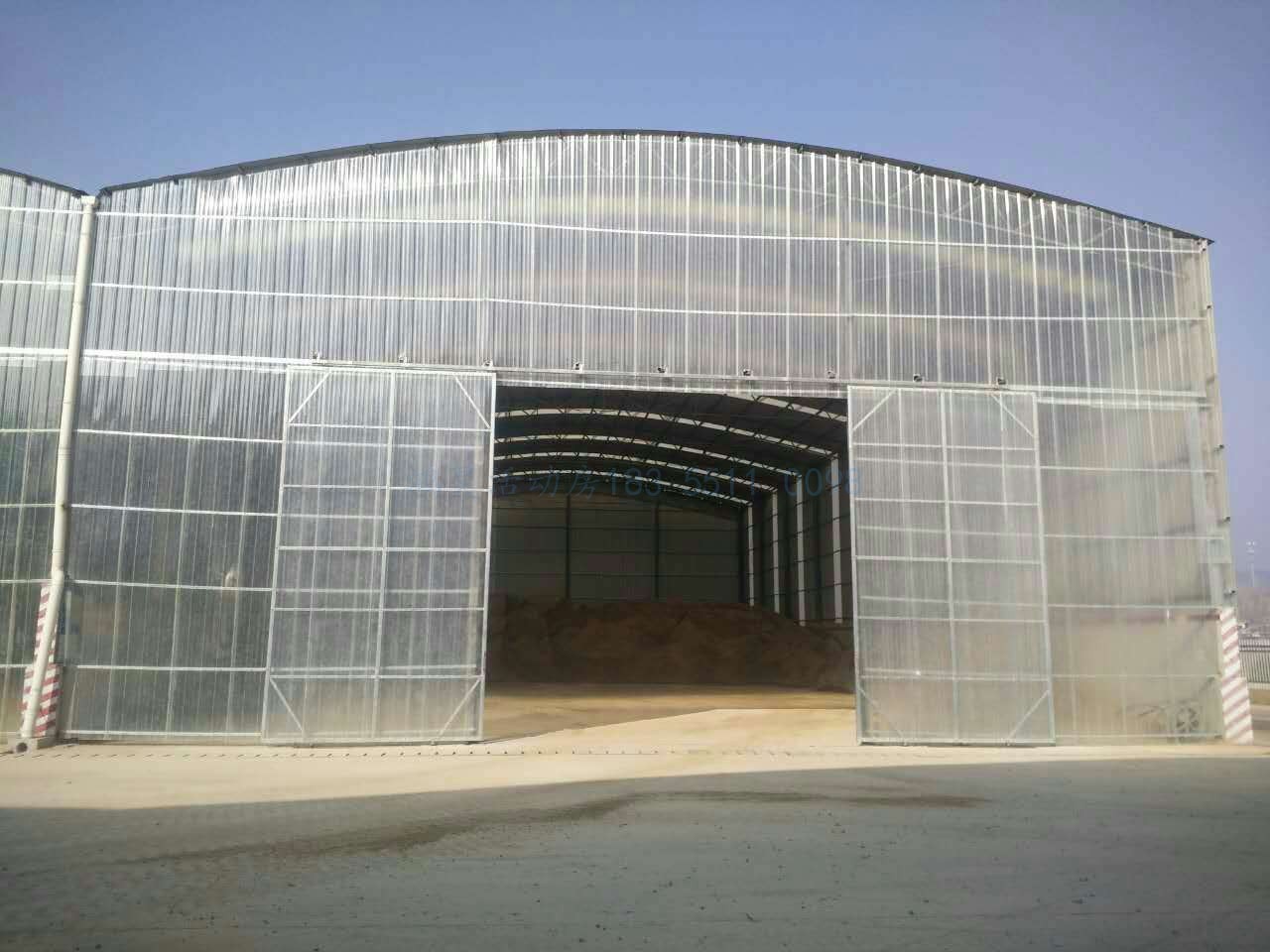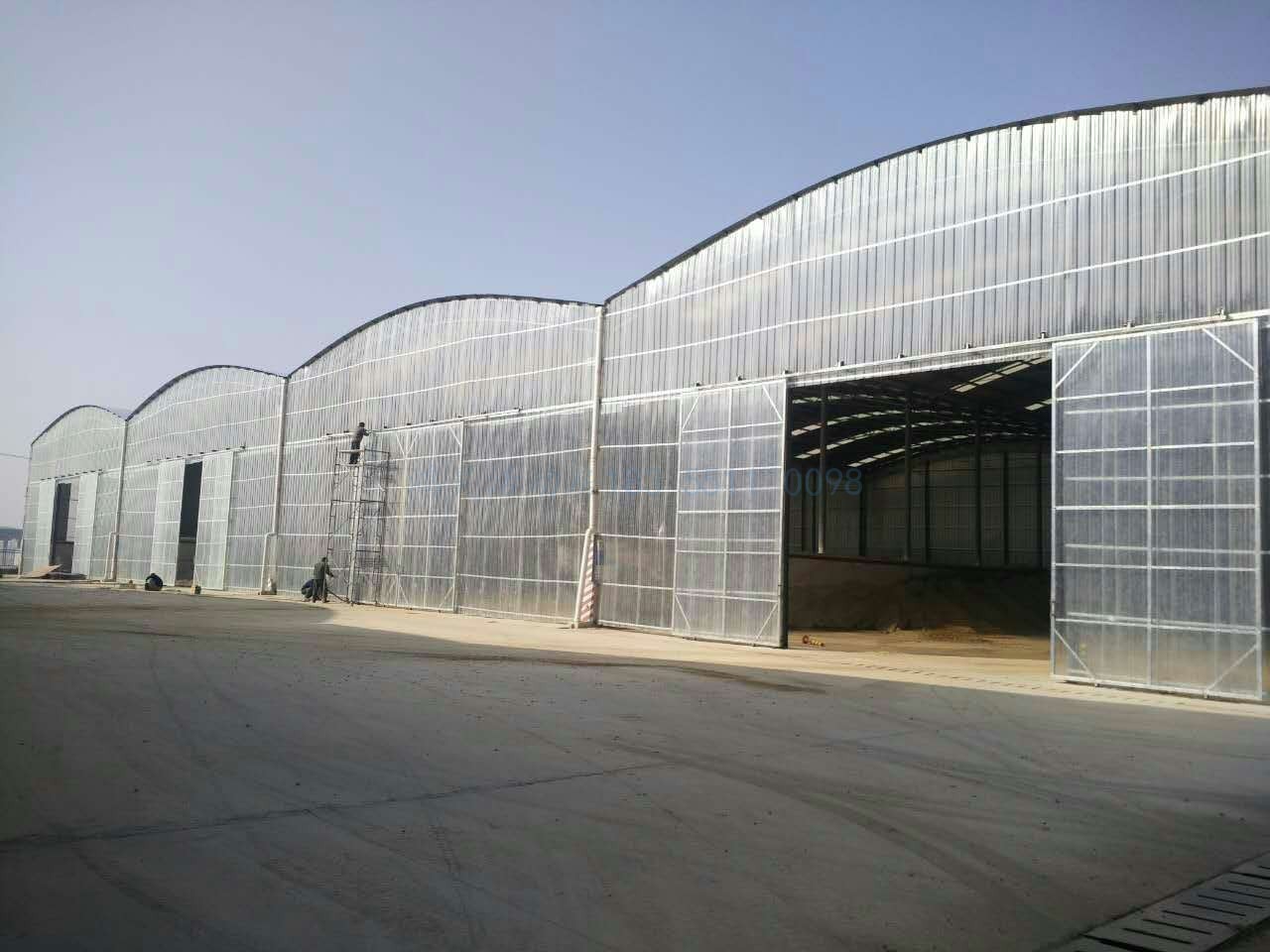 项目名称: 圆弧棚料仓全封闭移动门 中铁八局商合杭二期 项目地址:安徽寿县 施工单位:安徽鸿昊钢结构彩板有限公司 项目目的:料仓全封闭以达到 1.无尘化施工 2.给砂石保温,对抗即将到来的严冬,保障项目顺利施工
