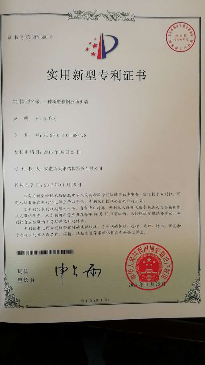 恭喜鸿昊公司荣获 徽派活动房专利证书!